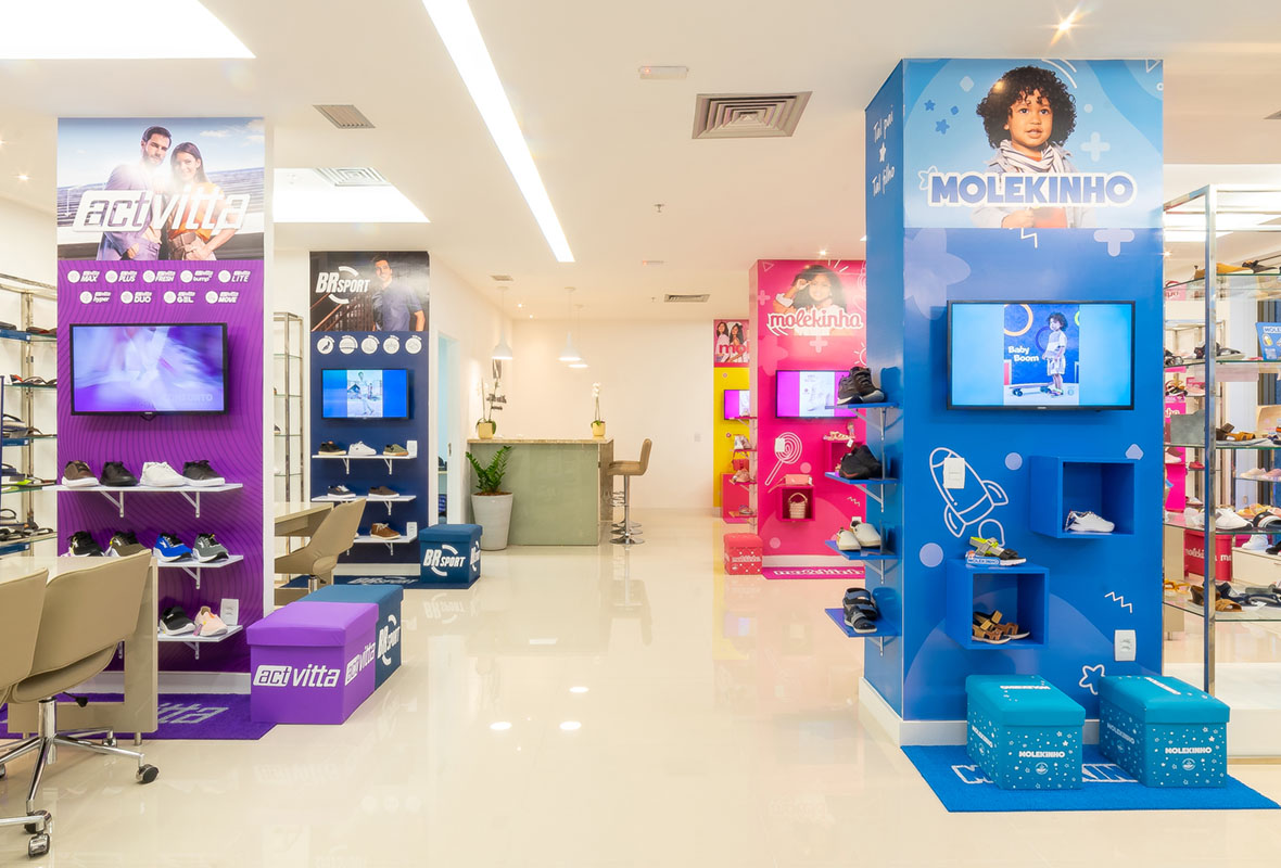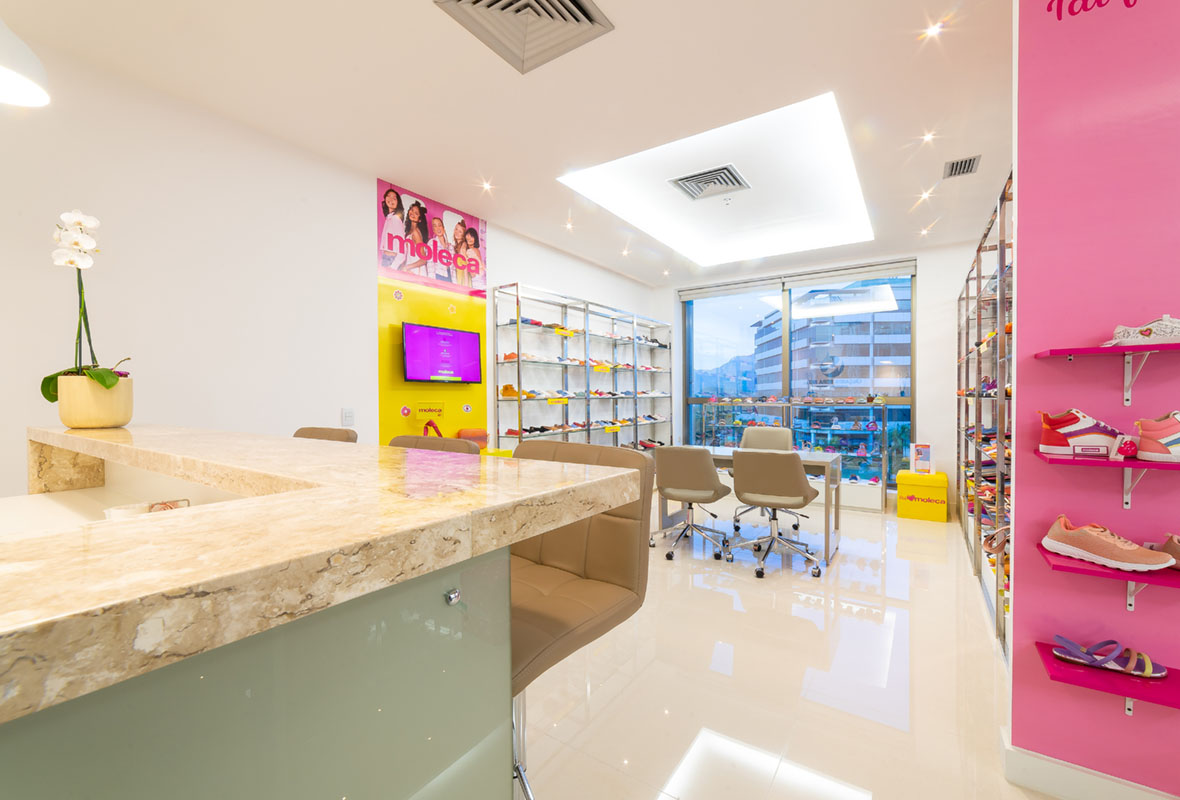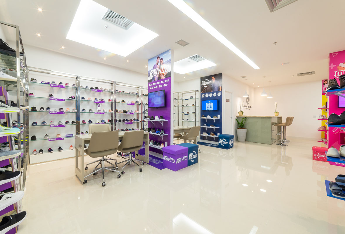 A proposta de arquitetura para lojas valorizou a exposição dos produtos, a circulação dos clientes e a experiência de compra no espaço físico.
