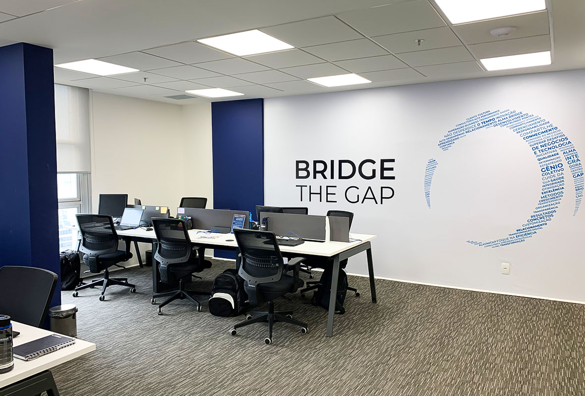 Projeto de arquitetura corporativa desenvolvido para a Bridge, priorizando eficiência, organização e conforto no ambiente de trabalho.