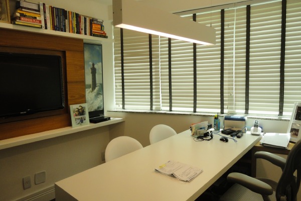 Outro ponto importante a ser observado é a iluminação. Escritórios pequenos com grandes janelas podem aproveitar a luz natural durante o dia. Basta que as estações de trabalho sejam posicionadas de forma que as janelas não incidam direto sobre os monitores, causando ofuscamento.