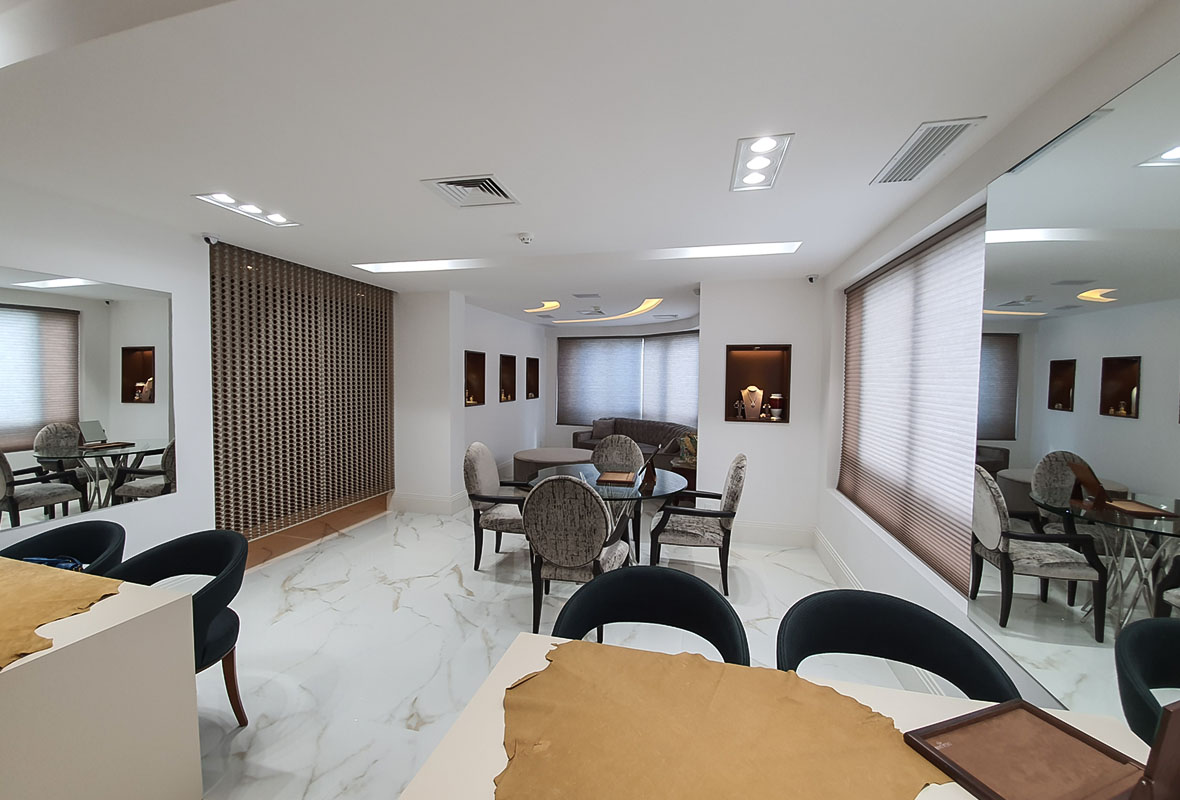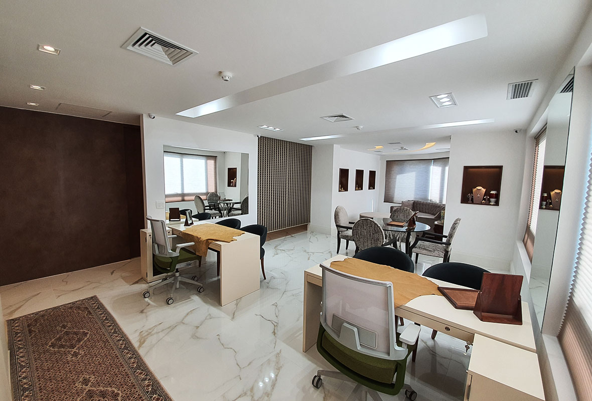 O projeto do atelier de joias foi pensado para valorizar a curadoria personalizada da marca, criando um ambiente sofisticado, acolhedor e alinhado à proposta de atendimento individualizado.