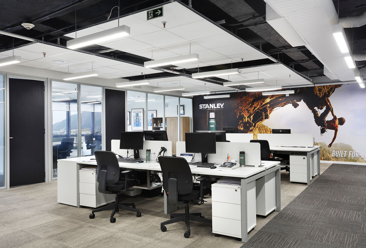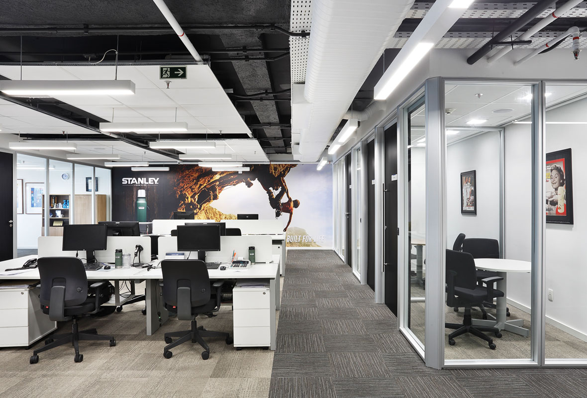 Corporate architecture project developed for PMI – Stanley, focusing on functionality, ergonomics, and clarity in the distribution of spaces.