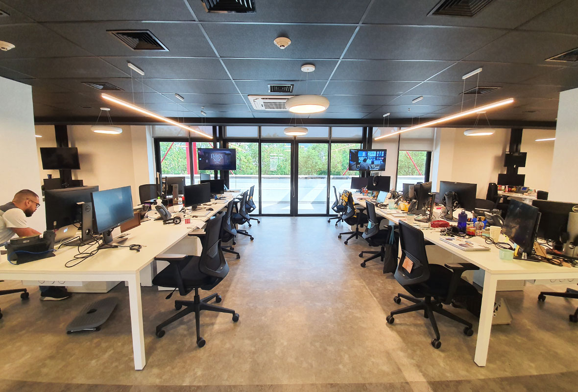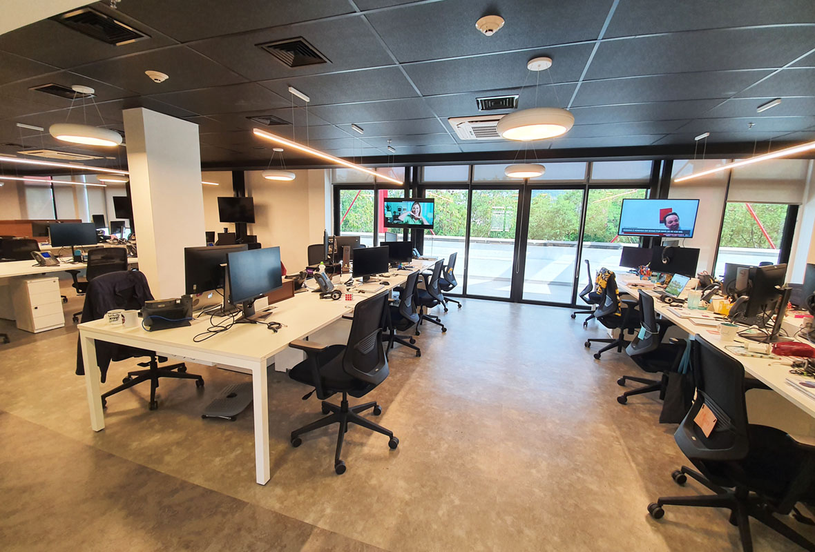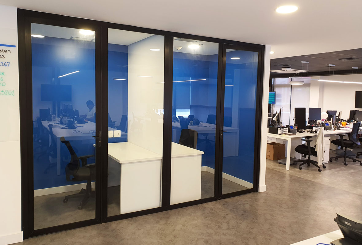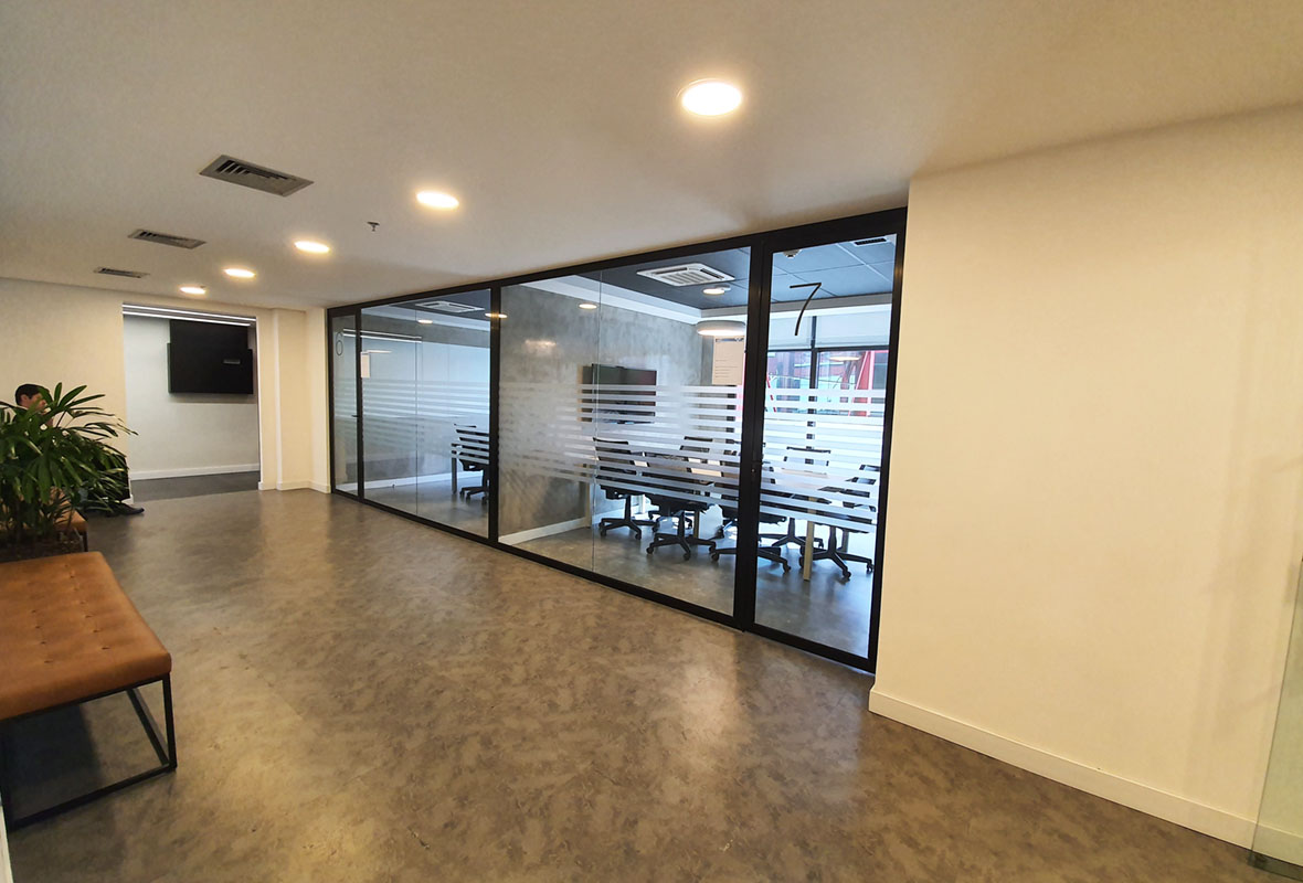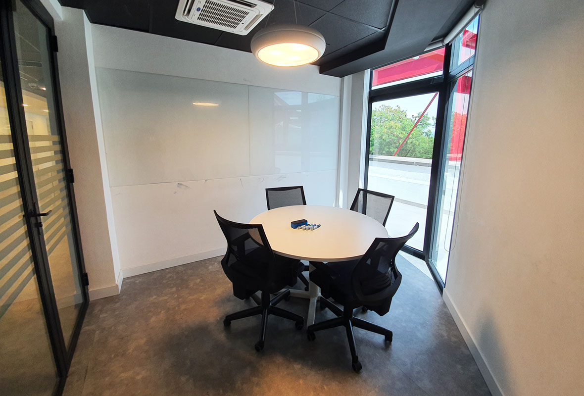 O layout corporativo foi planejado para atender às demandas operacionais da empresa, integrando espaços colaborativos e áreas de reunião de forma eficiente e bem distribuída.