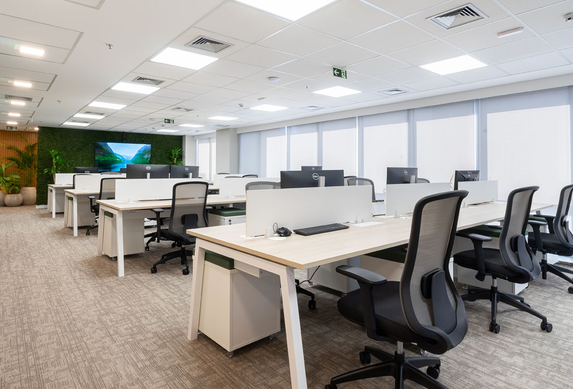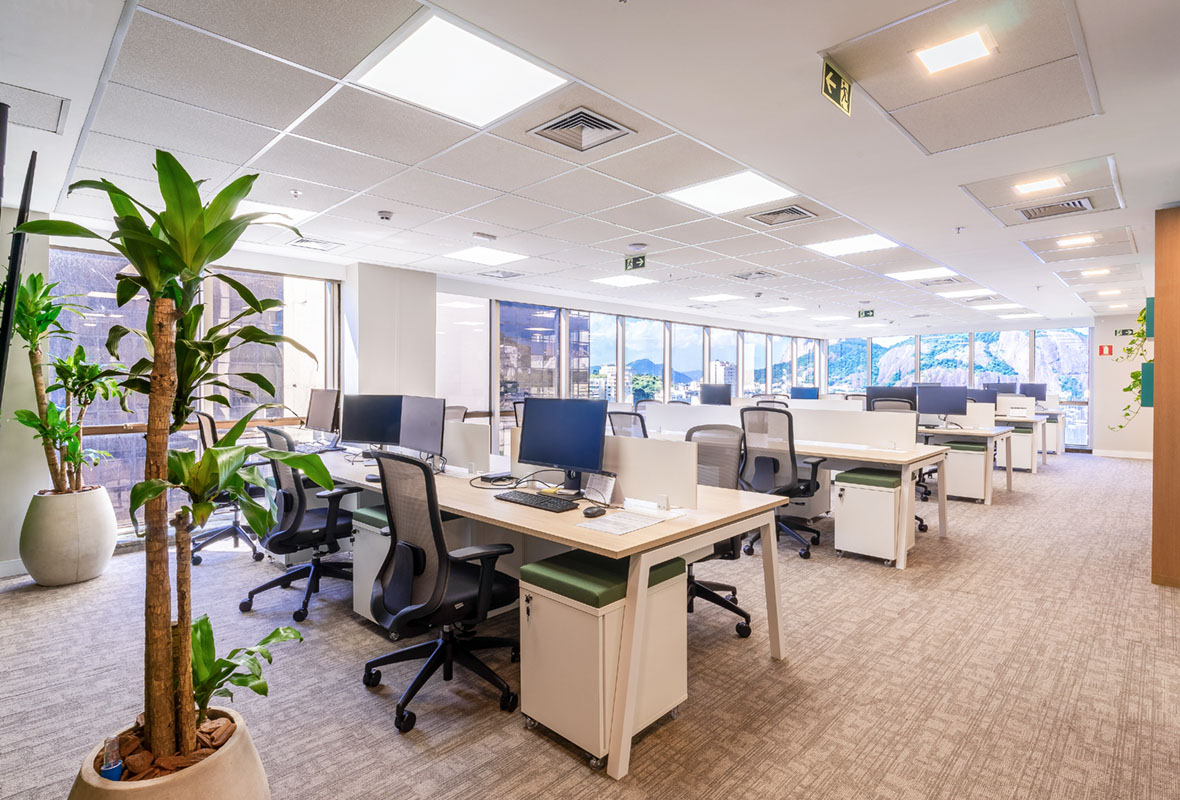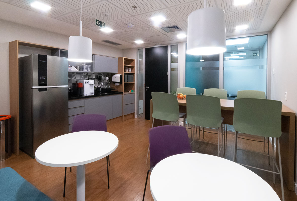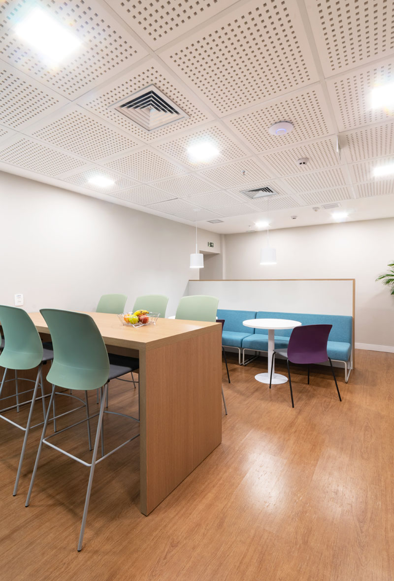 Projeto de arquitetura corporativa para empresa do setor industrial, com foco em praticidade, organização e eficiência no uso do espaço.