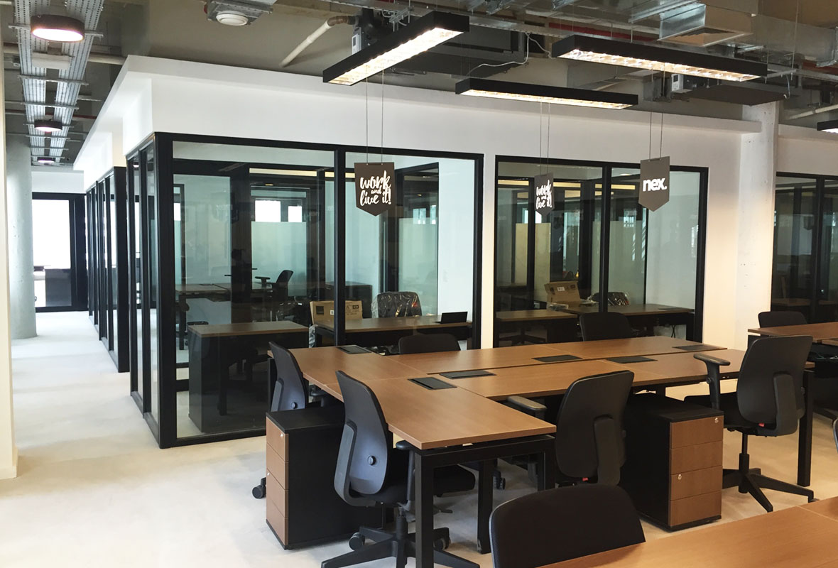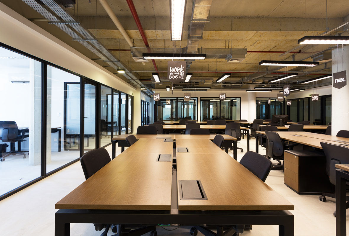 Projeto de arquitetura corporativa pensado para apoiar a operação da Nex, com atenção ao layout, ergonomia e fluidez dos espaços.