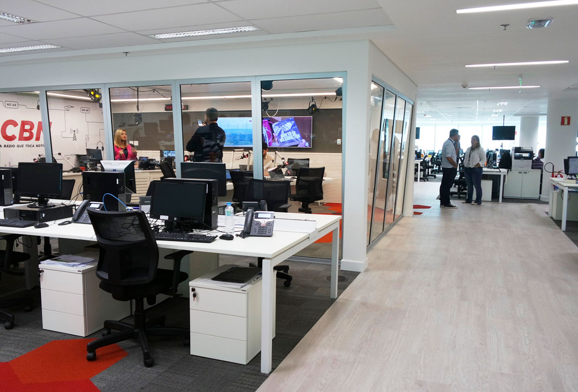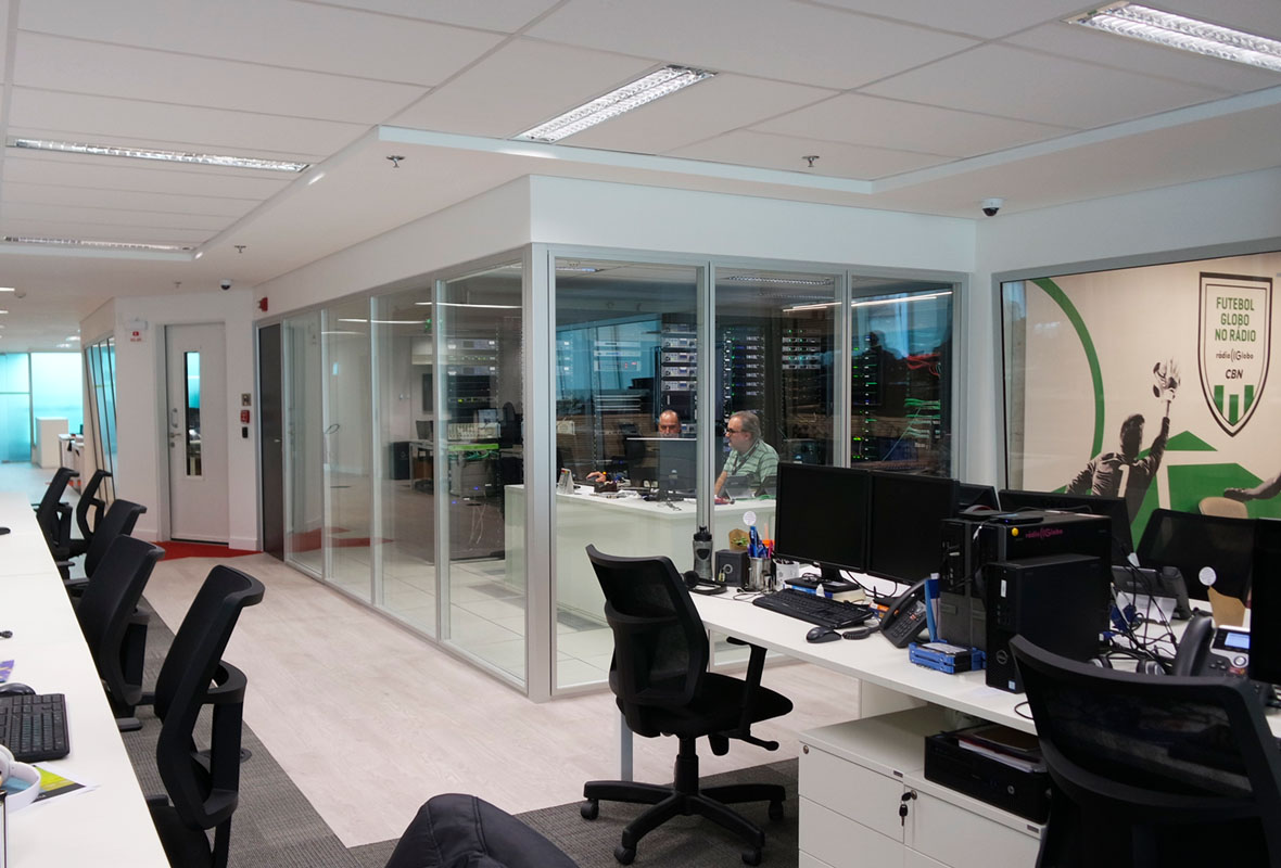 O projeto foi entregue para a Radio Globo e o escritório foi planejado para oferecer funcionalidade, conforto e integração entre os ambientes, respeitando a dinâmica do dia a dia da Rádio Globo.
