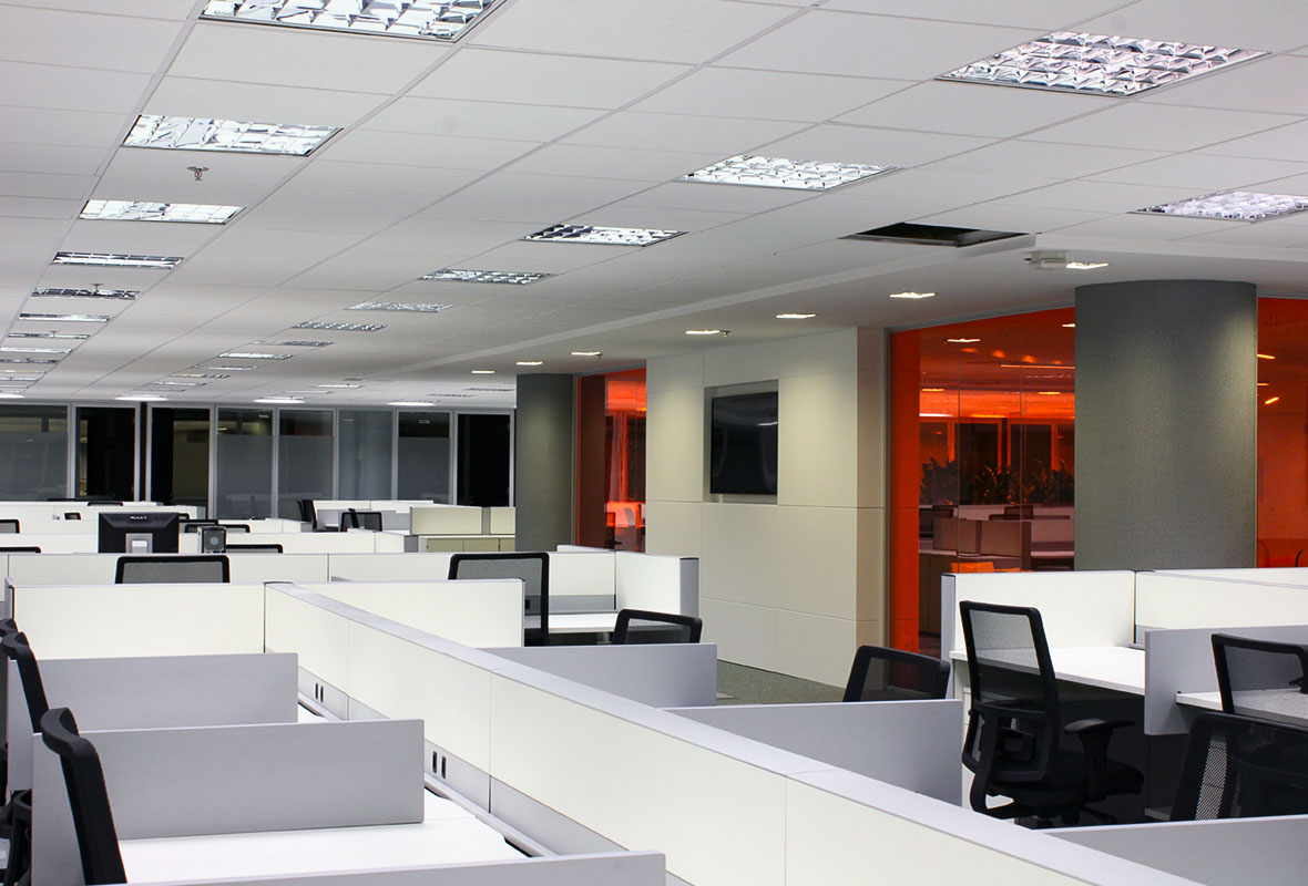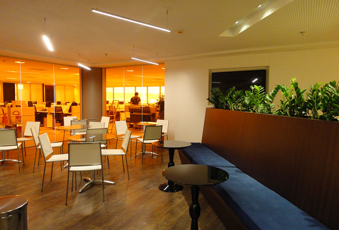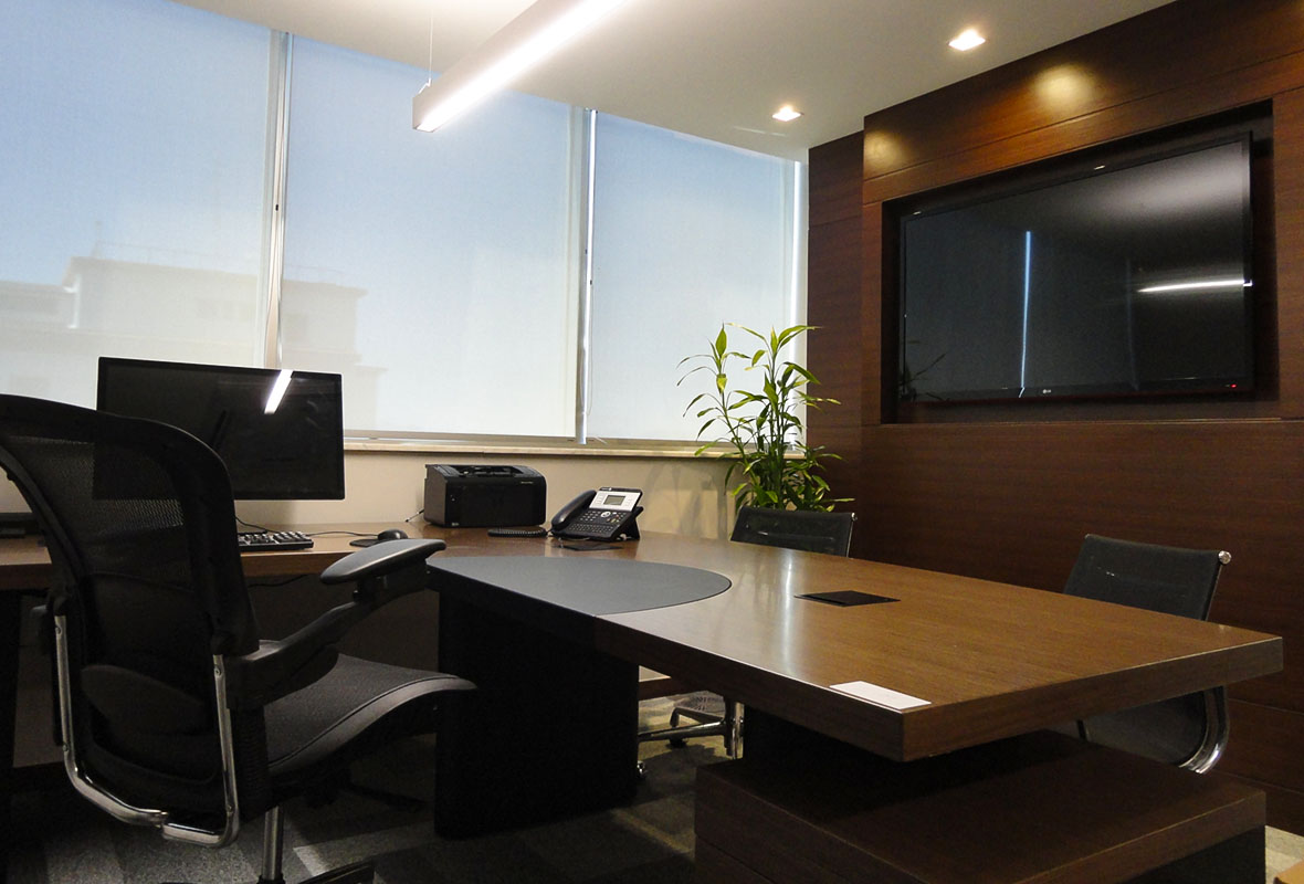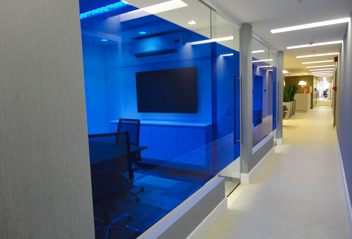 A proposta de arquitetura para escritórios considerou as necessidades operacionais da empresa, criando um escritório corporativo eficiente e bem distribuído.