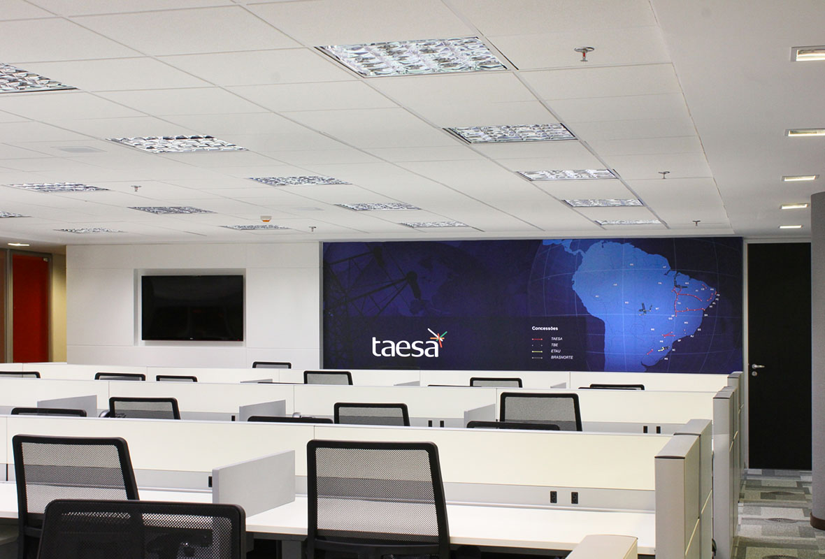 Projeto de arquitetura corporativa desenvolvido para a Taesa, priorizando funcionalidade, conforto e clareza na organização dos ambientes.