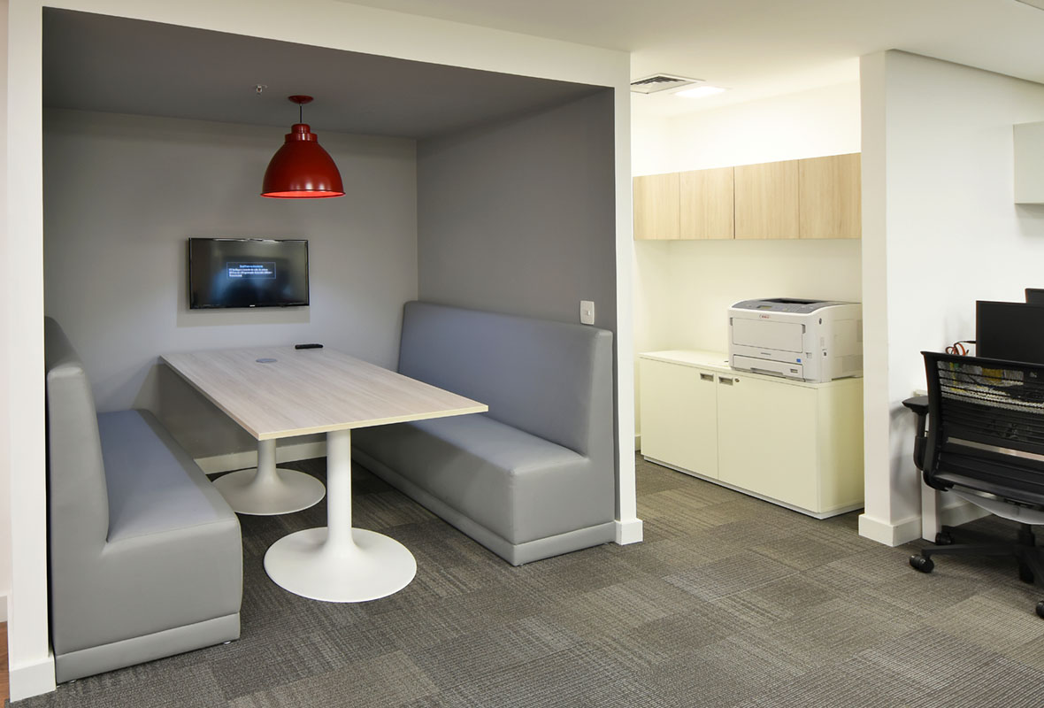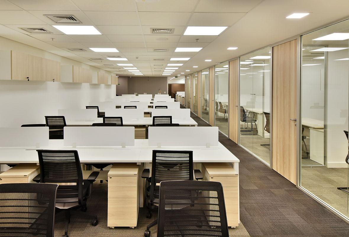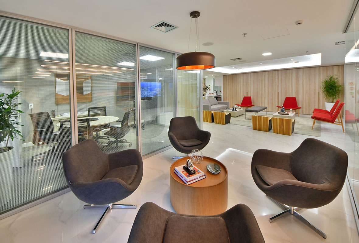 A Casa Três desenvolveu um espaço alinhado ao perfil institucional da Trench Rossi Watanabe, priorizando conforto, eficiência e uma linguagem corporativa sóbria.
