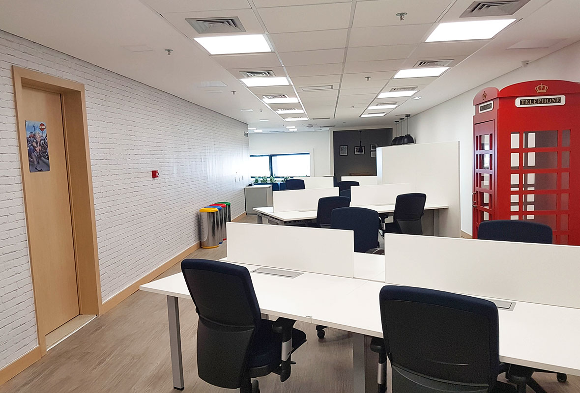 A proposta de arquitetura para escritórios resultou em um layout corporativo eficiente, alinhado às necessidades operacionais da empresa.